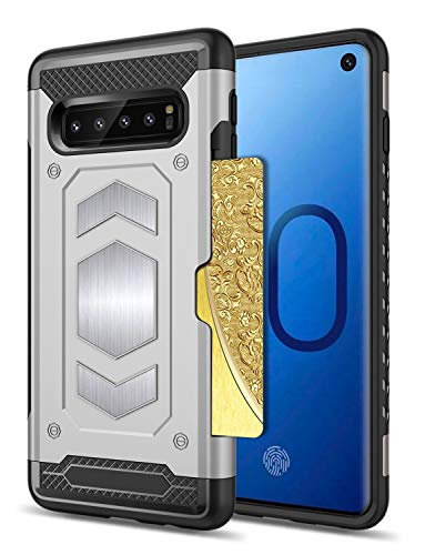 7.) Heavy Duty Galaxy S10 Case with Card Holder GREATRULY Durable Dual Layer Phone Case for Samsung Galaxy S10 Hard Cover Drop Proof Soft TPU Card Slot Fits Magnetic Car Mount Silver