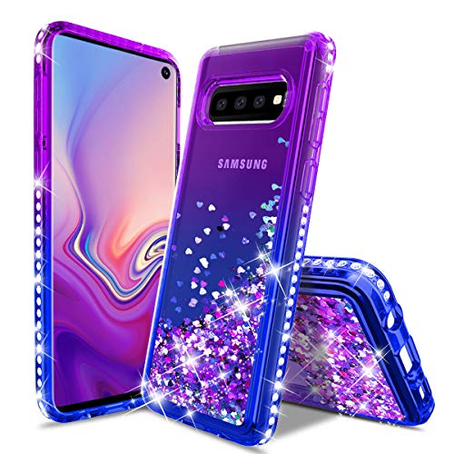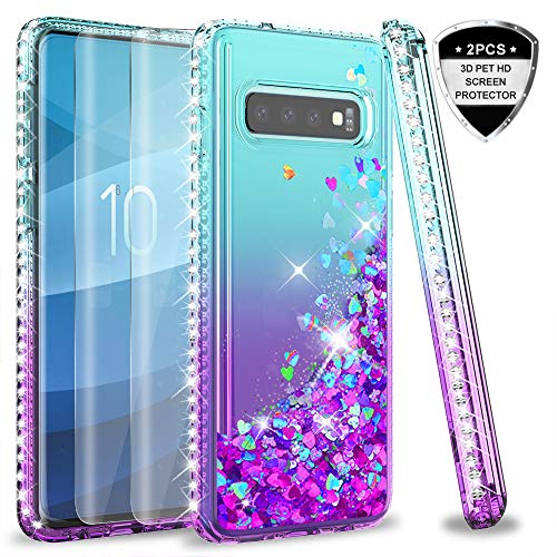 5.) Galaxy S1-0 Case with 3D PET Screen Protector 2 Pack for Girls Women LeYi Glitter Bling Diamond Liquid Quicksand Clear TPU Protective Phone Case for Samsung S1-0 ZX (Gradient Teal Purple)
